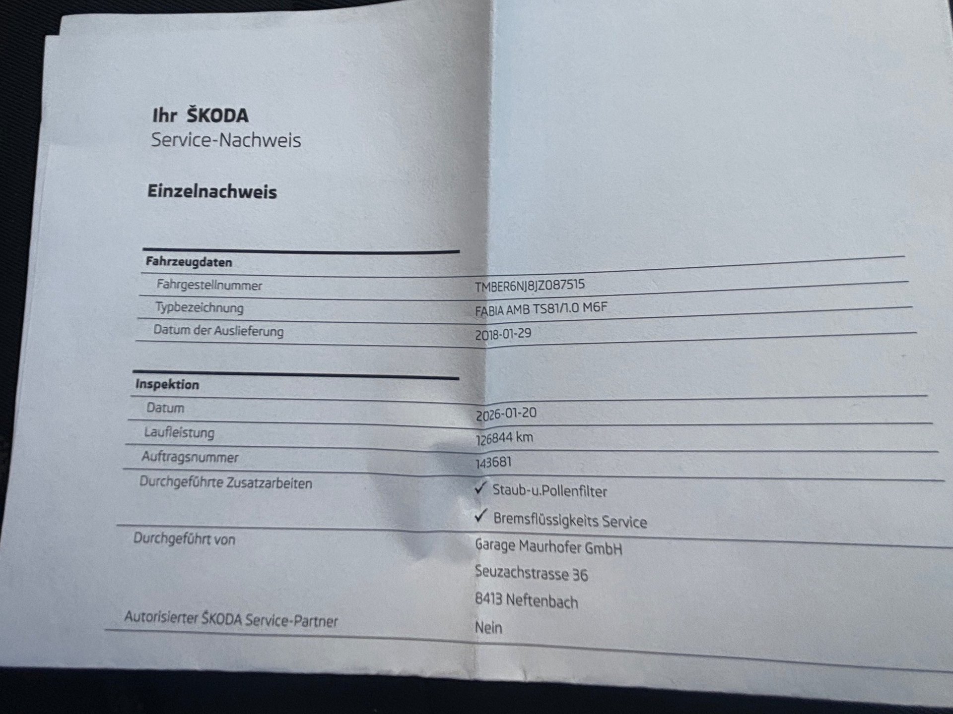 2018 SKODA Fabia 1.0 TSI