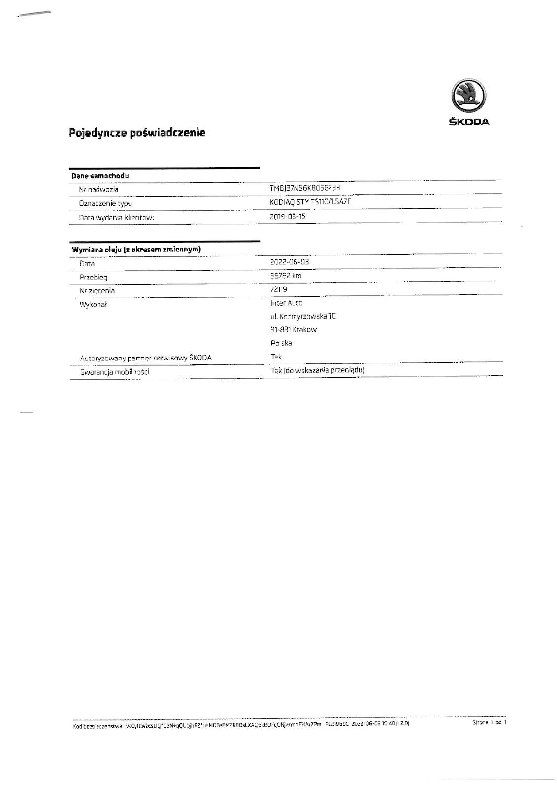 - Chassis-Nr.TMBJB7NS6K8036233