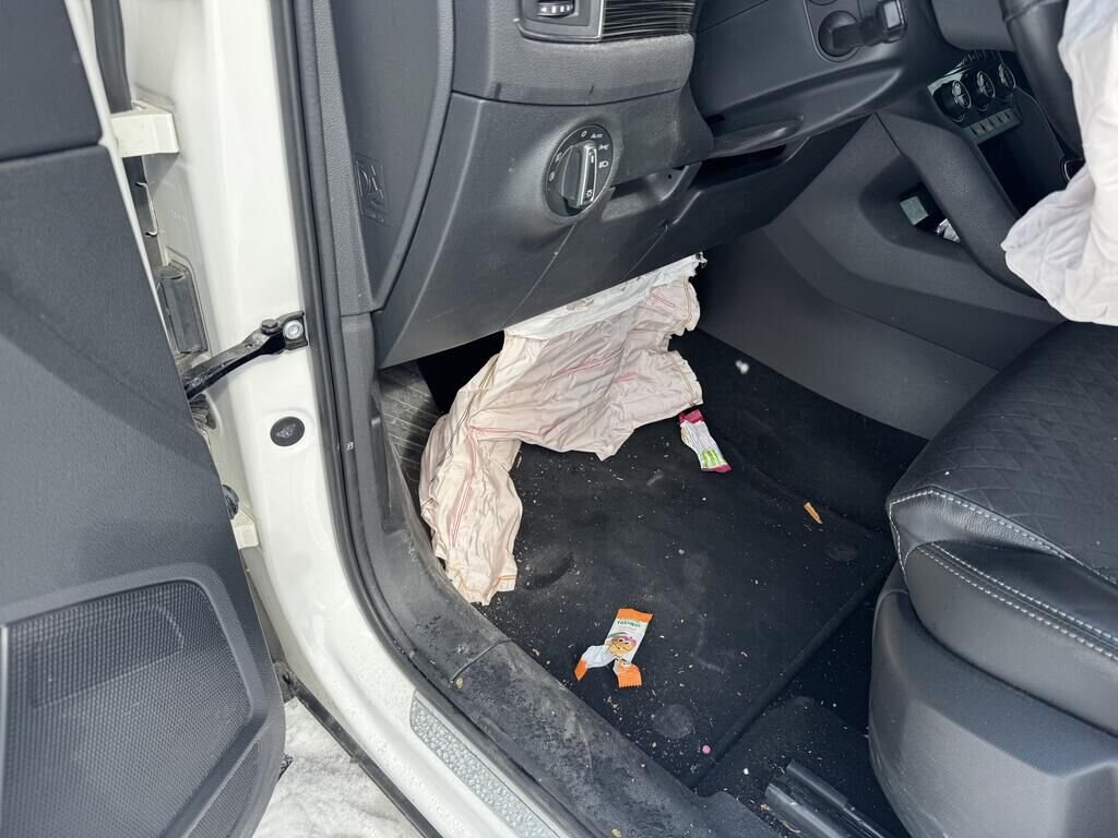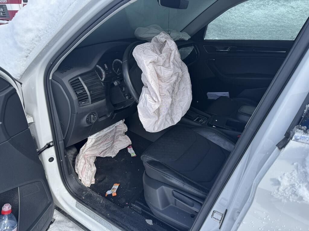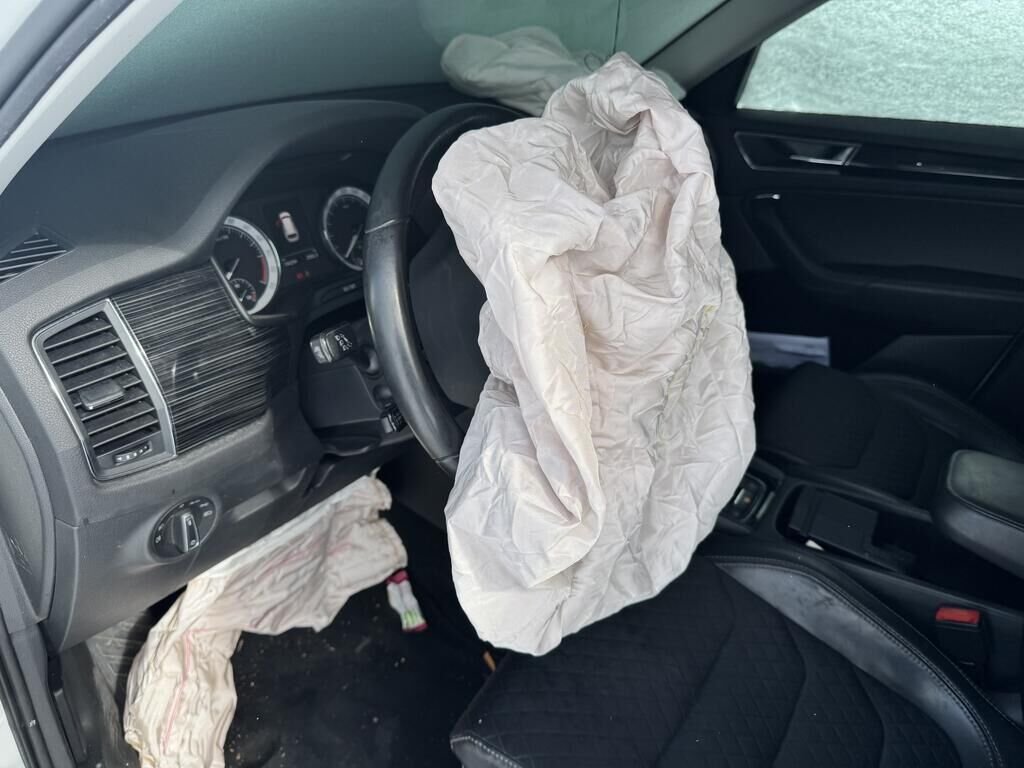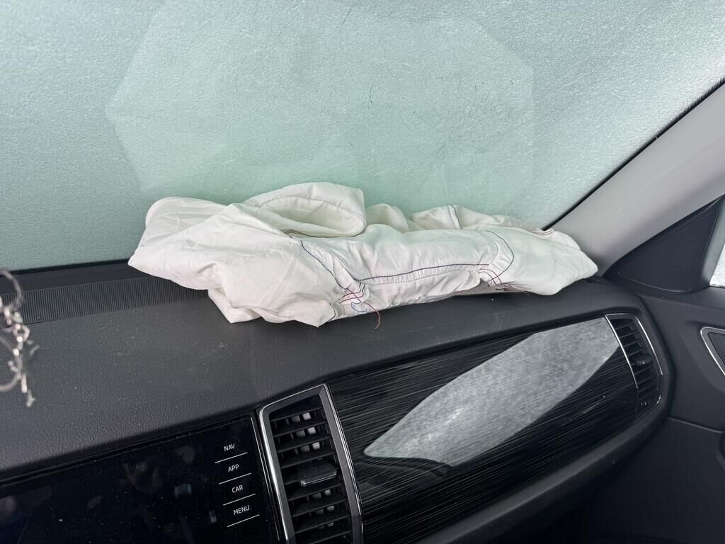 Beide Airbag mit Knieairbag und Gurtstraffer ausgelöst, Armaturenbrett beschädigt.