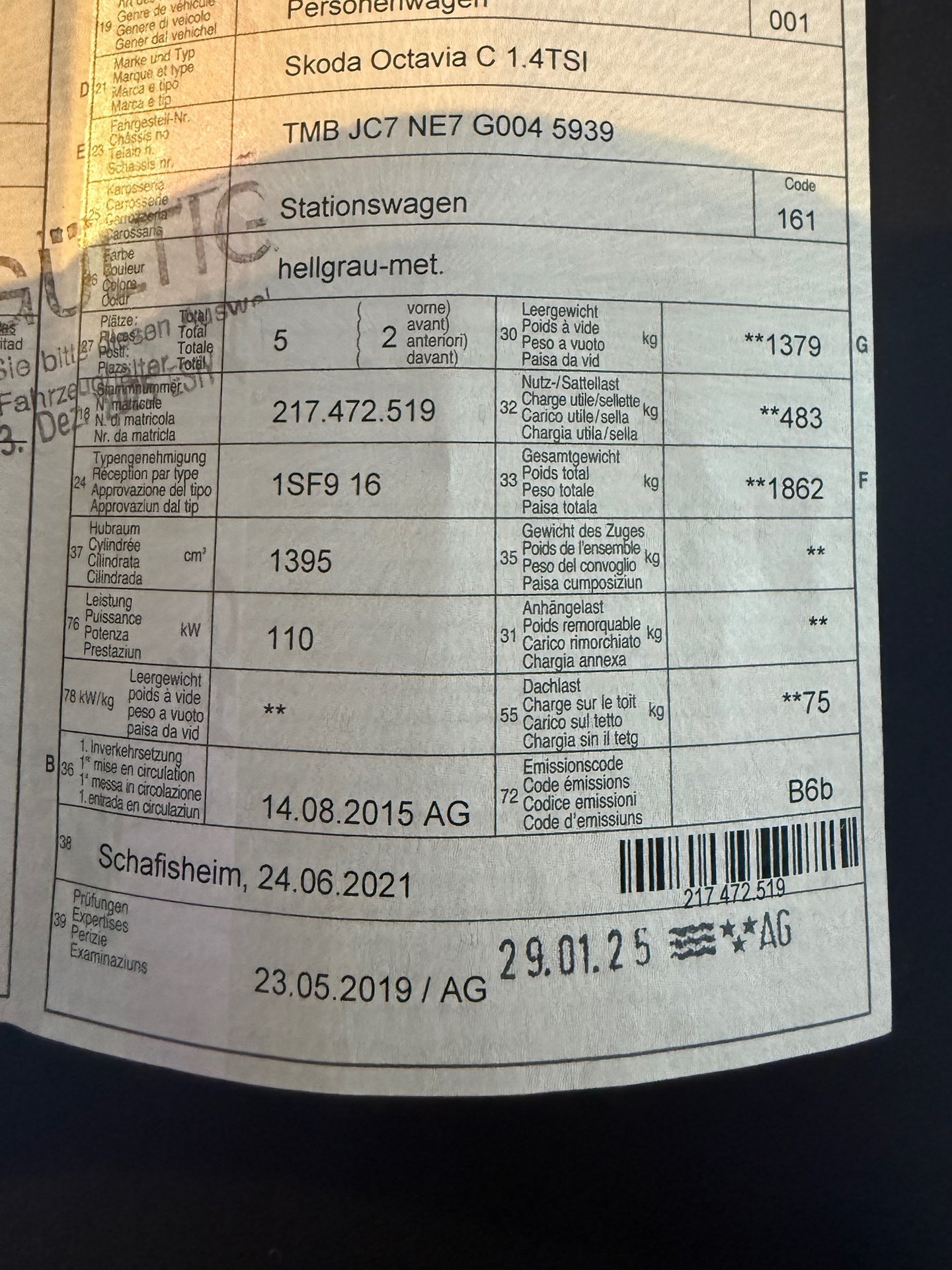2015 SKODA Octavia C 1.4TSI