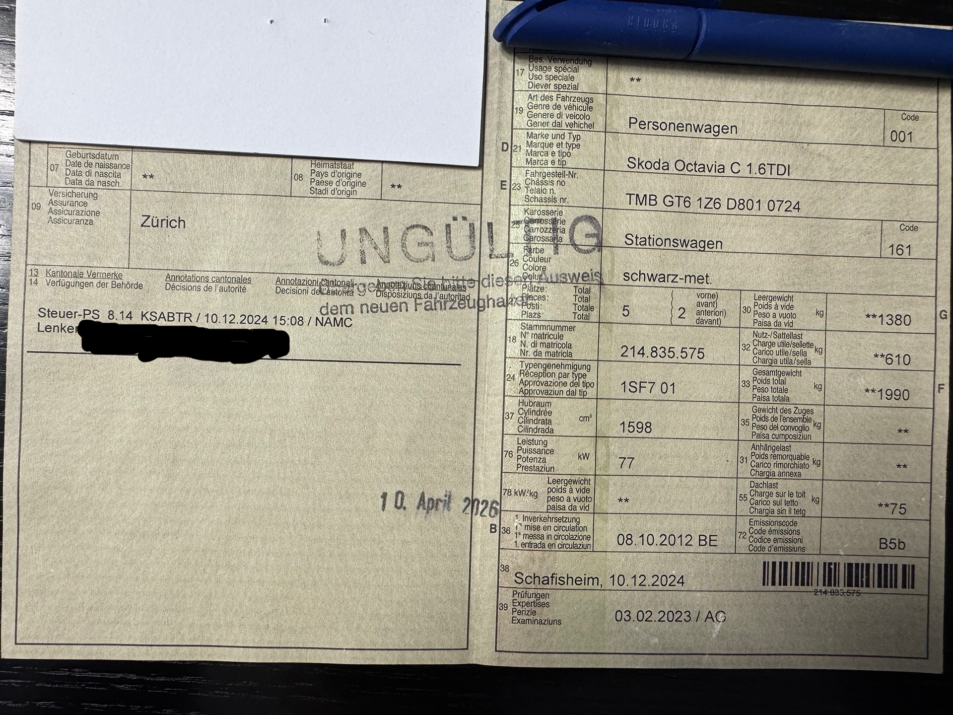 2012 SKODA Octavia C 1.6TDI