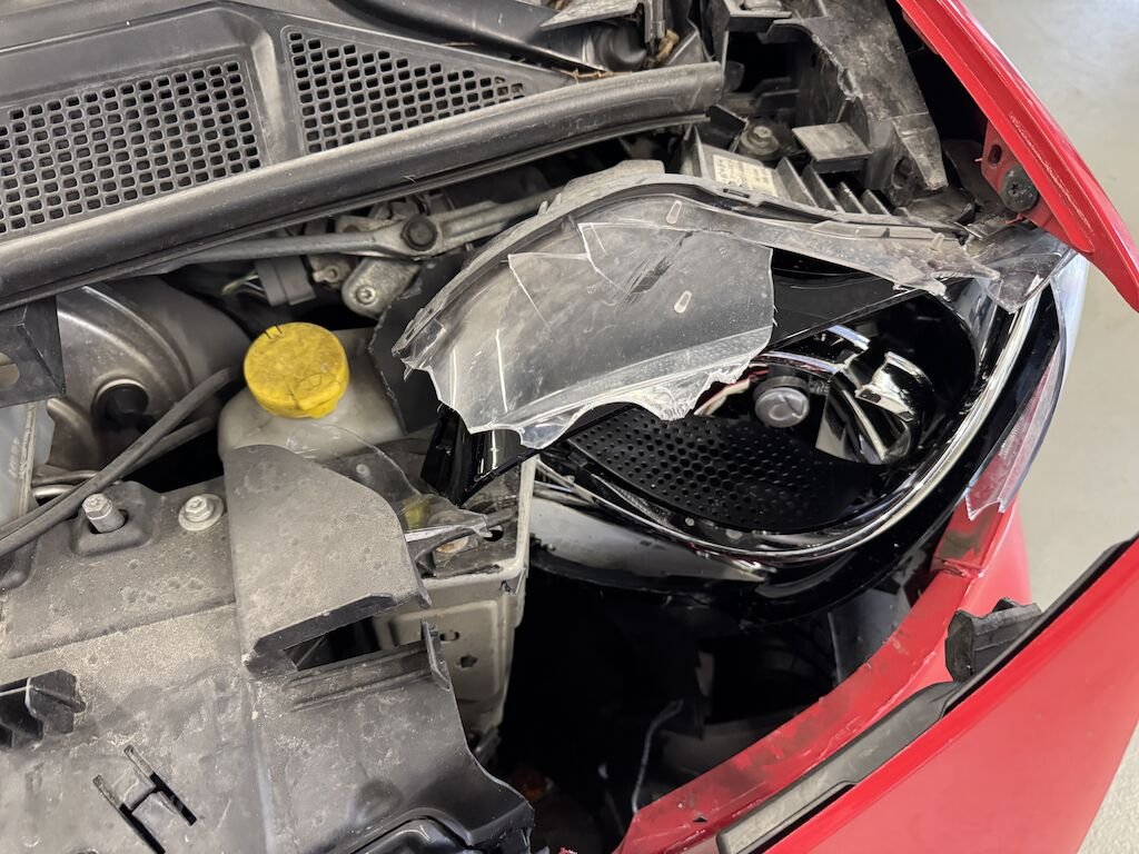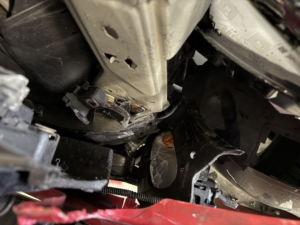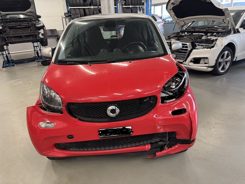 Dabei wurde die gesamte Stossstange, der Kühlergrill, der Kotflügel rechts, der Querträger, der Scheinwerfer links, die Wartungsklappe und diverse Anbauteile deformiert.
