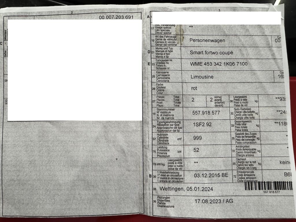 Vor Ort waren: 1 Schlüssel, Ausweis. Motor und Getriebe wurde nicht geprüft