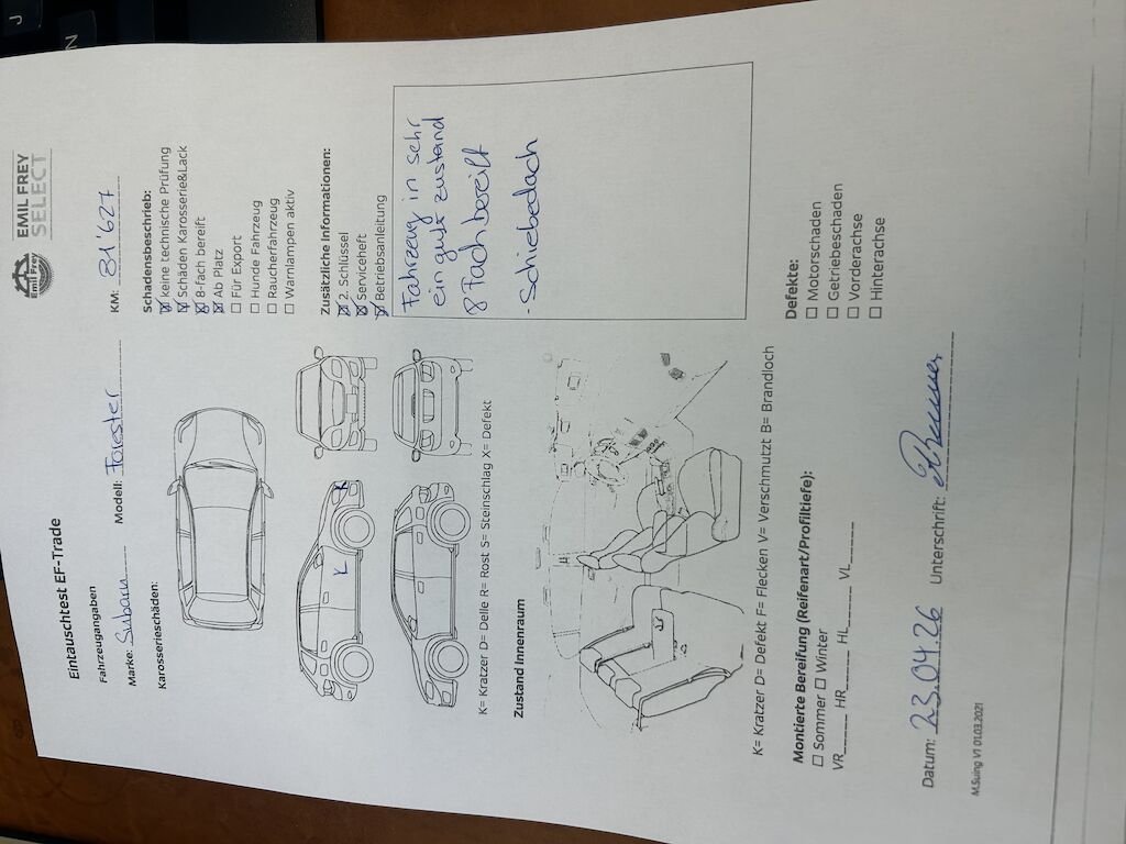 Keine technische Prüfung (Werkstatttest) vorgenommen