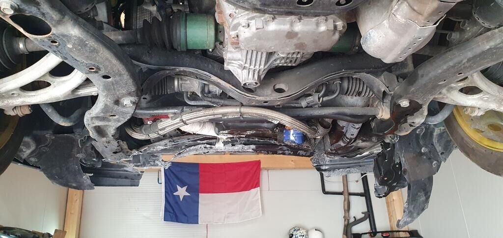Pare-chocs avant, radiateurs, berceau, filtre à huile, bloc moteur endommagé