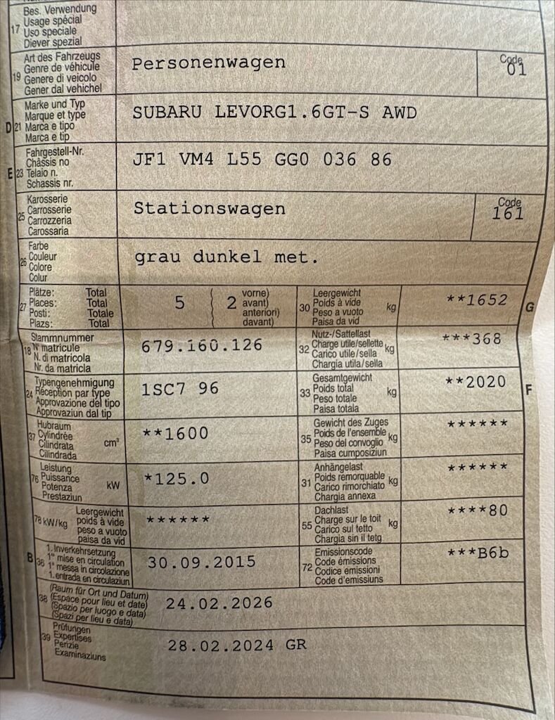 2015 Subaru levorg 1.6 Luxury S