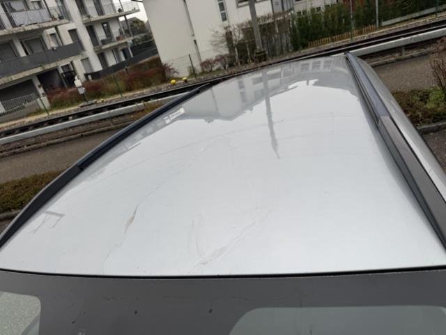 Klarlack am Dach löst sich ab.