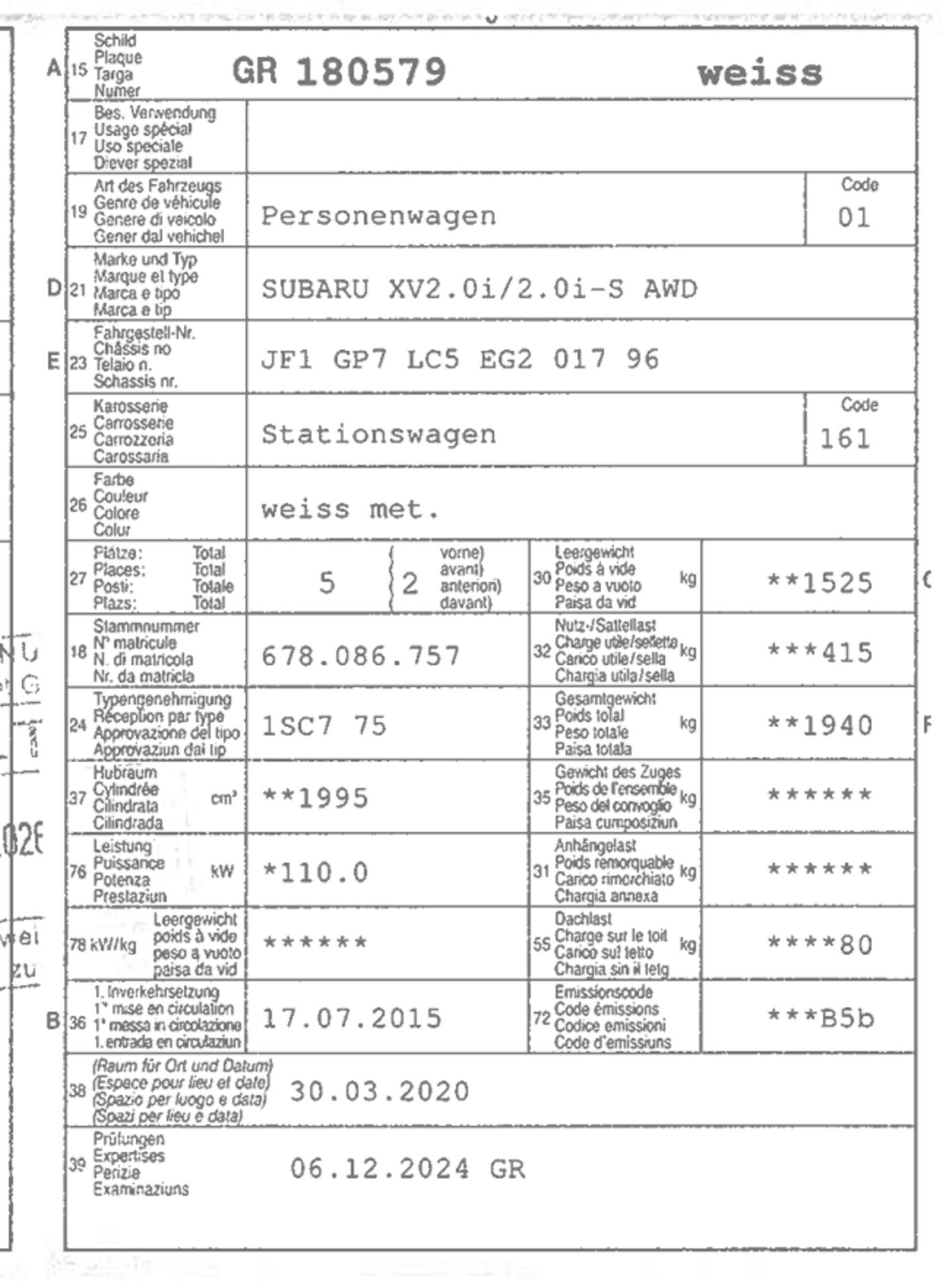 2015 SUBARU XV2.0i/2.0i-S AWD