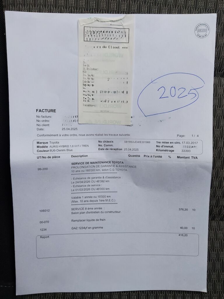 Tous les services ont été effectués chez un agent Toyota.