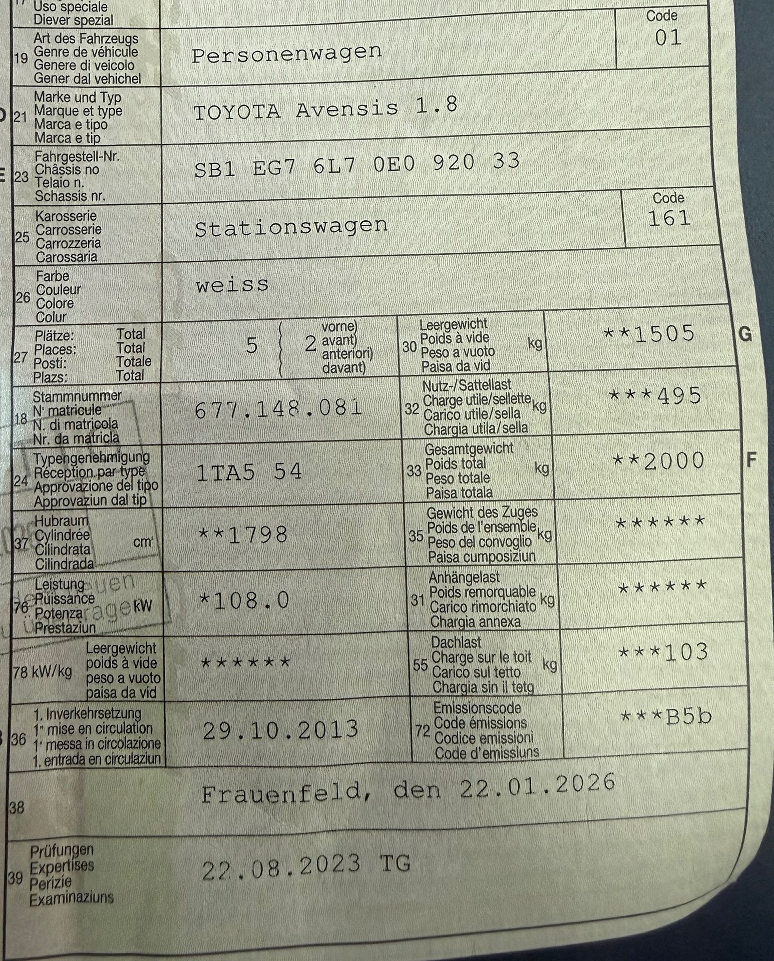 2013 TOYOTA Avensis 1.8