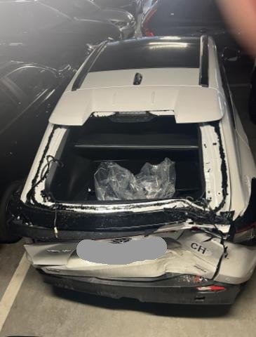 Heck eingedrückt.