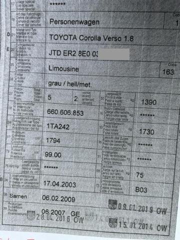 2003 Toyota Corolla Verso 1.8 VVT-i Linea Sol