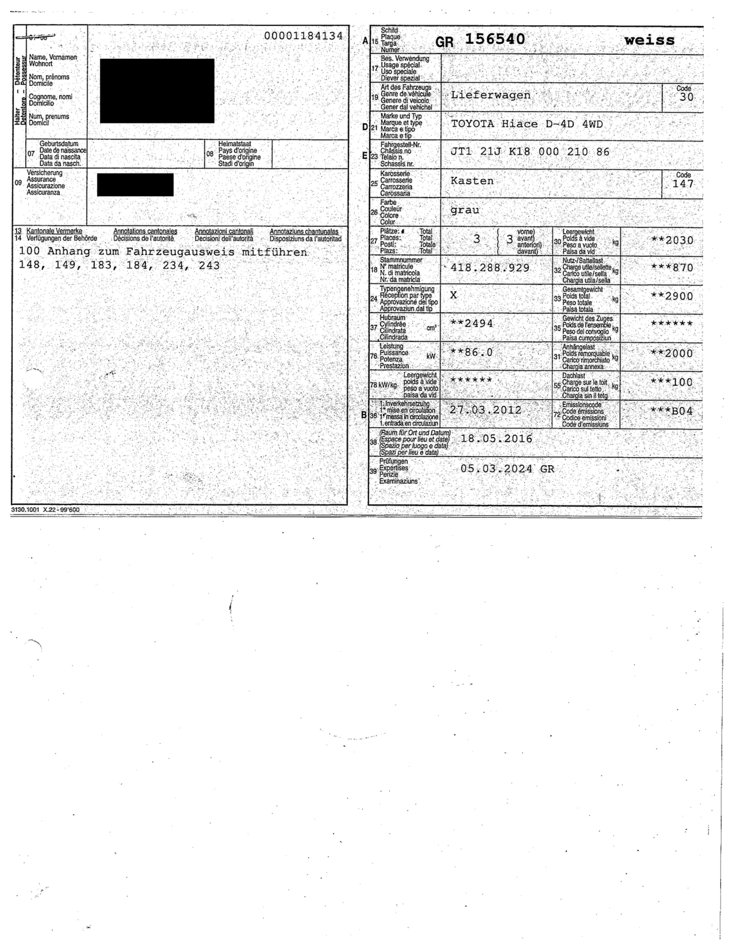 2012 TOYOTA Hiace D-4D 4WD