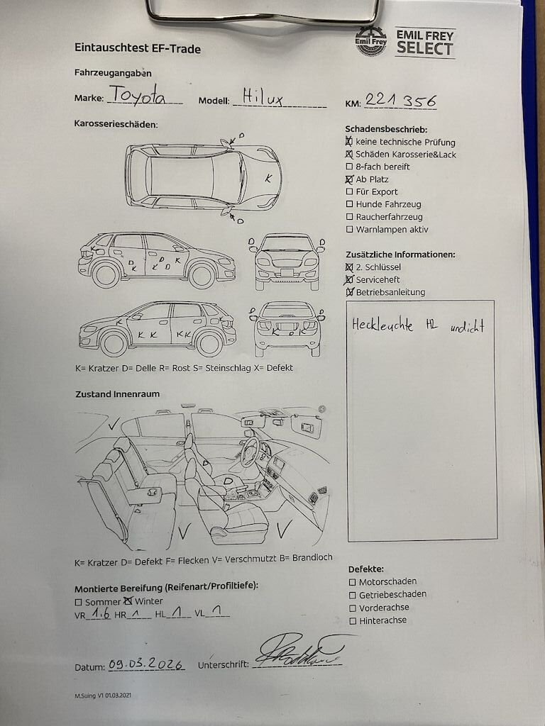 Fahrzeug ab Platz, ohne Garantie und Aufbereitung. Heckleuchte HL undicht