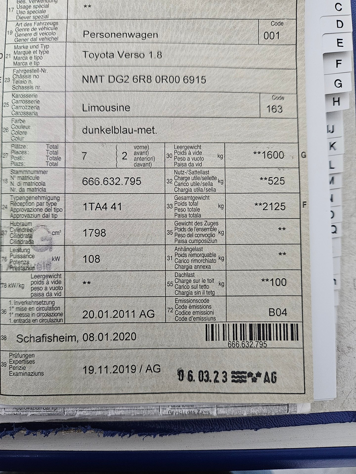 2011 TOYOTA Verso 1.8
