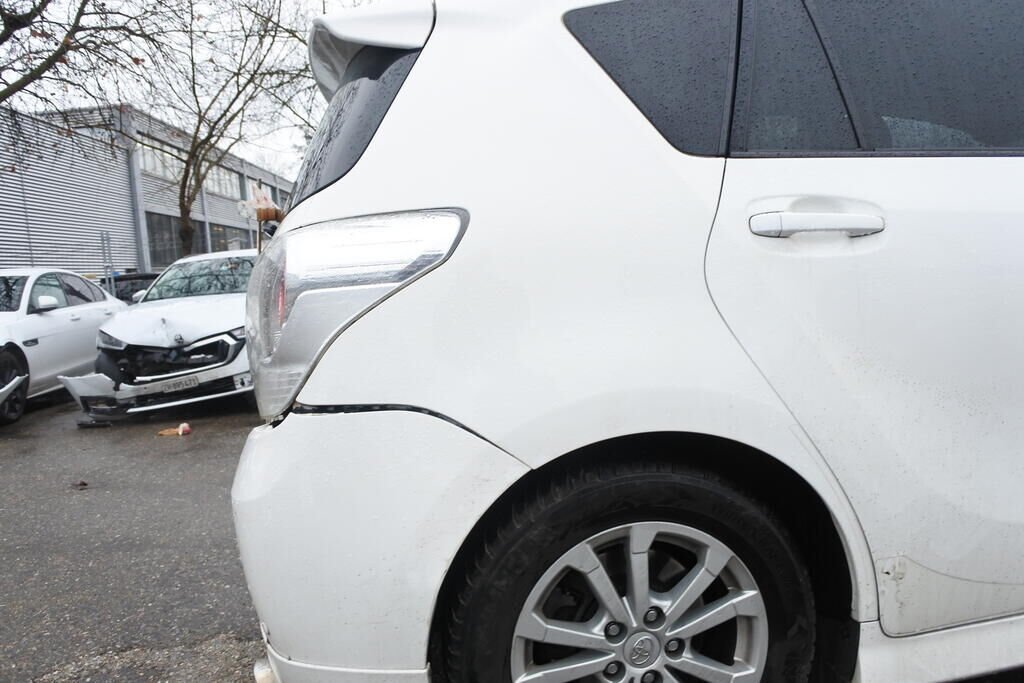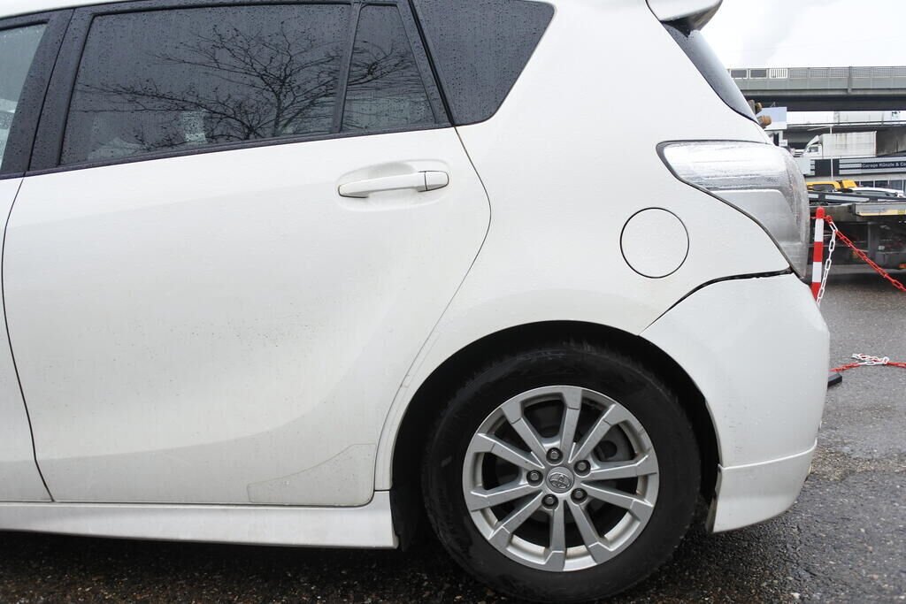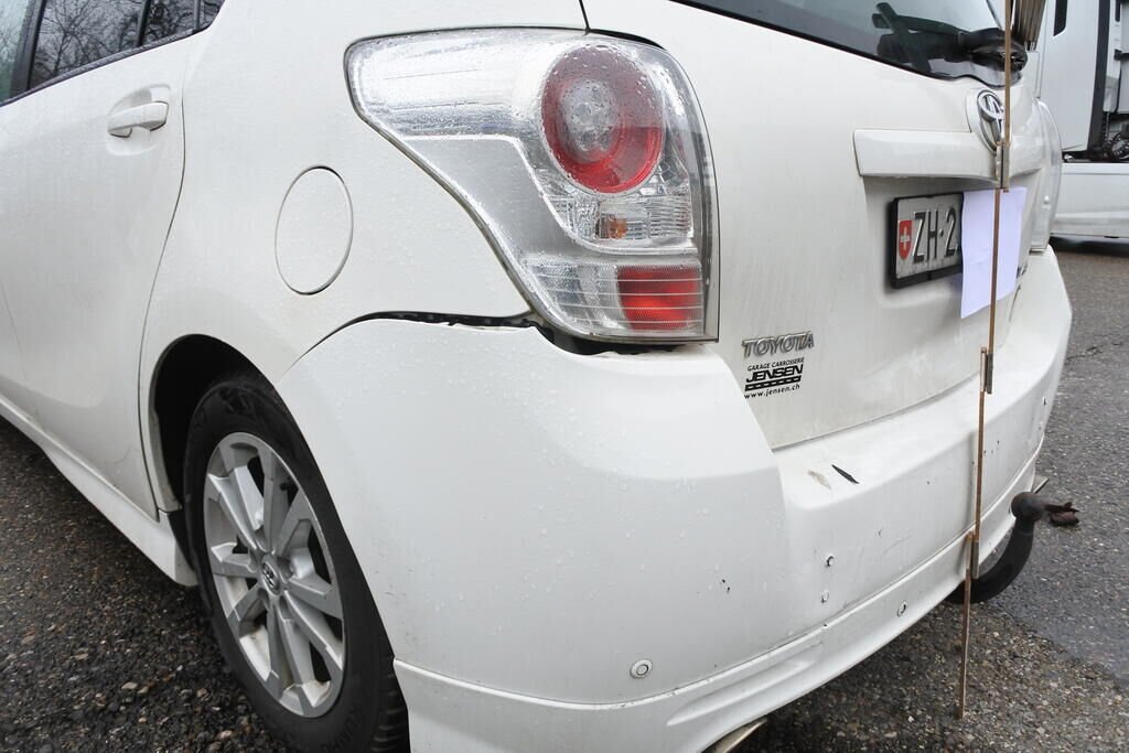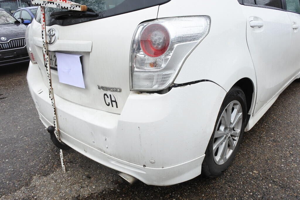 Die Stossstange, die AHK, die Heckklappe sowie beide Seitenwände aussen und innen inkl. der Längsträger sind beschädigt/aufgestacht. Beide Türfälze links und rechts sind verjüngt.