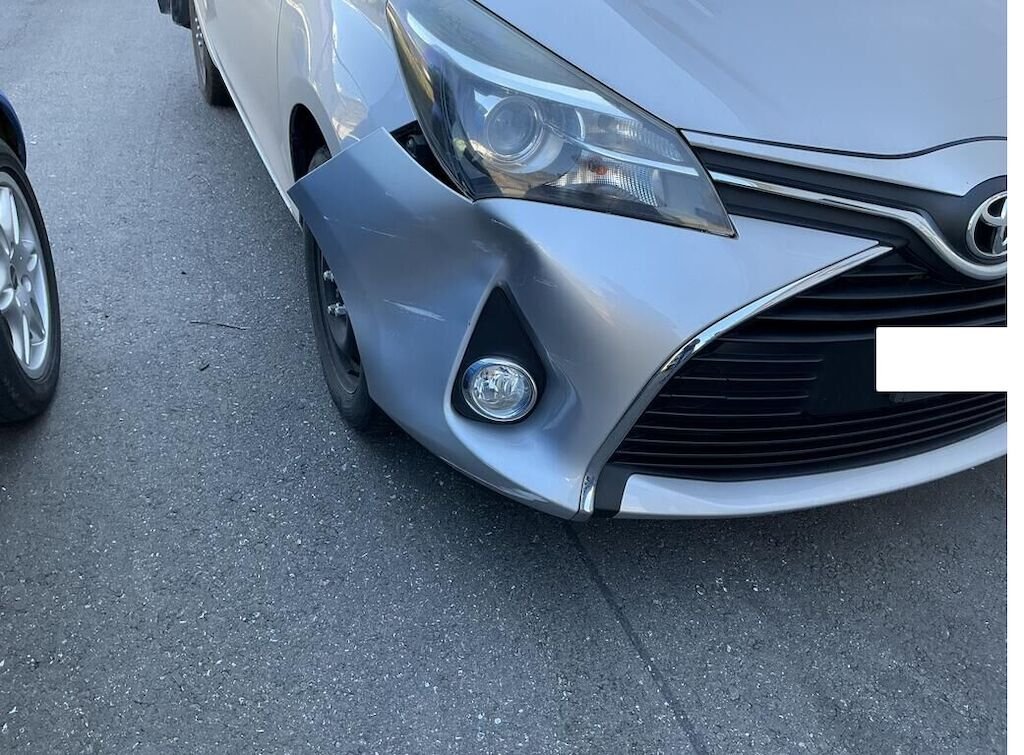 Pare-chocs avant déformé et fissuré