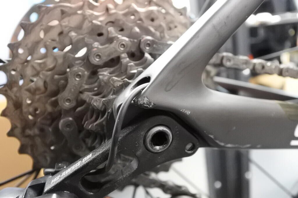 Das Speichenrad vorne und hinten sowie deren Bremsscheiben, der Lenker mit Bandage und Vorbau, der Hauptrahmen im Oberzug und Ausfallende hinten rechts, der Wechsel, die Pedale sowie der Sattel sind beschädigt.