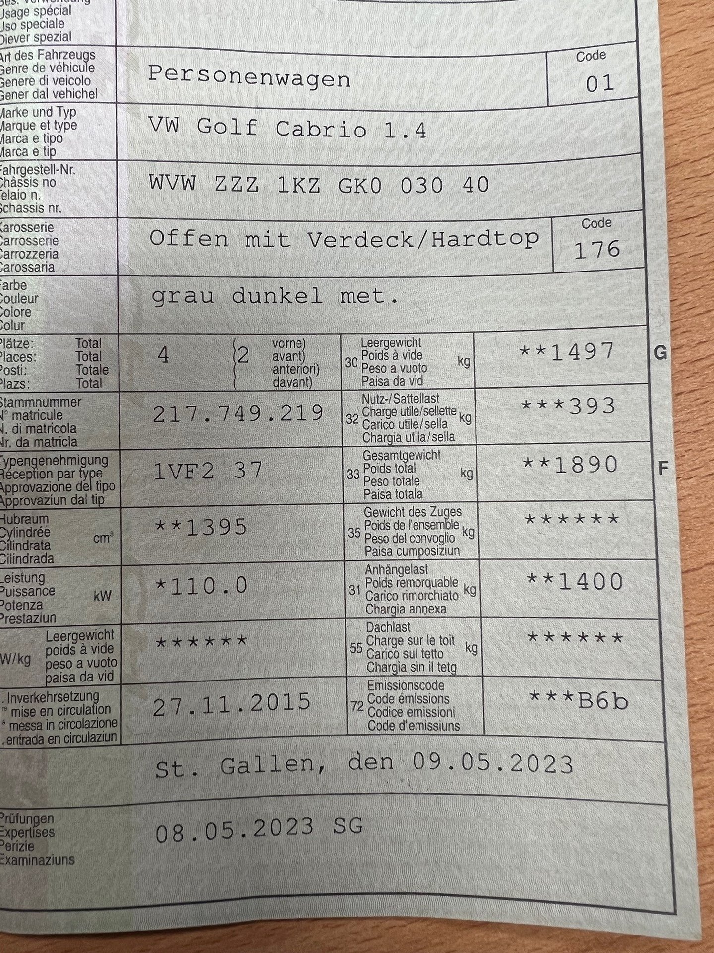2015 VW Golf Cabrio 1.4