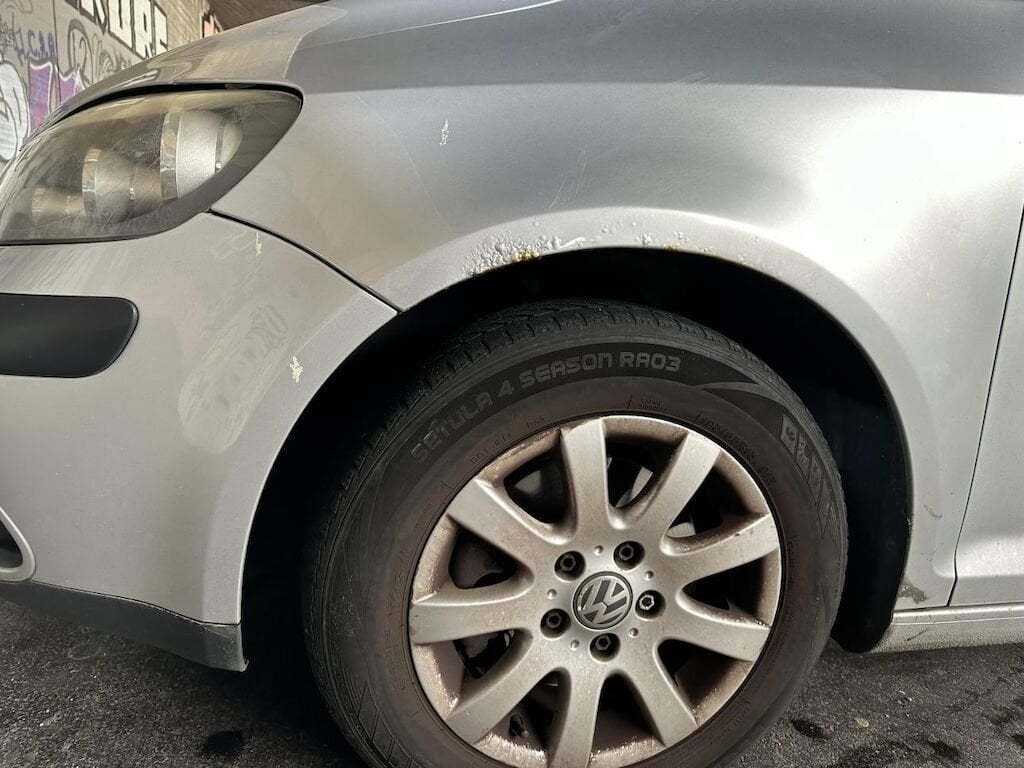 Das Fahrzeug hat diverse Roststellen, Dellen und Kratzer.