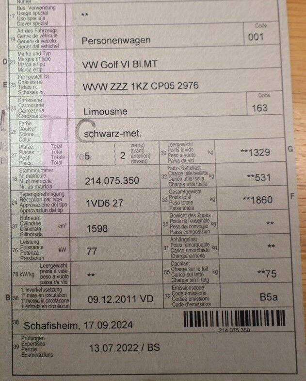 - Chassis-Nr.WVWZZZ1KZCP052976