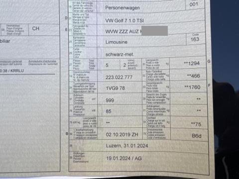 2019 VW Golf VII 1.0 TSI 115 Swissline Plus