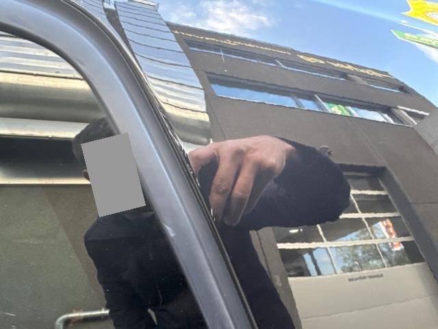 Seitenscheibe hinten links ist zerbrochen / beschädigt.