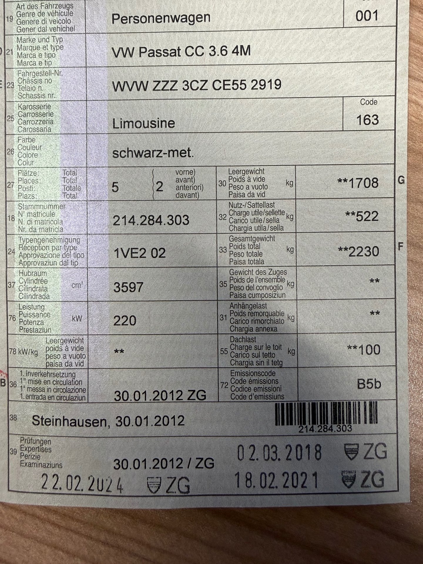 2012 VW Passat CC 3.6 4M