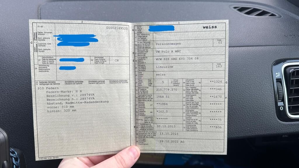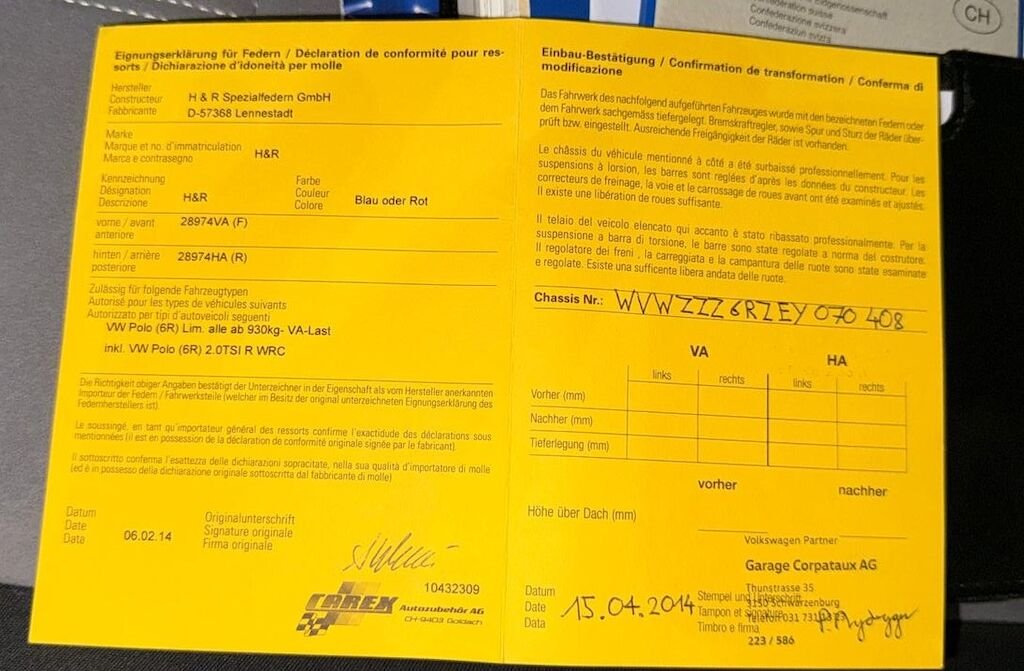 H&R-Federn verbaut, Beiblatt vorhanden, im Ausweis eingetragen - Typenschein1VE851