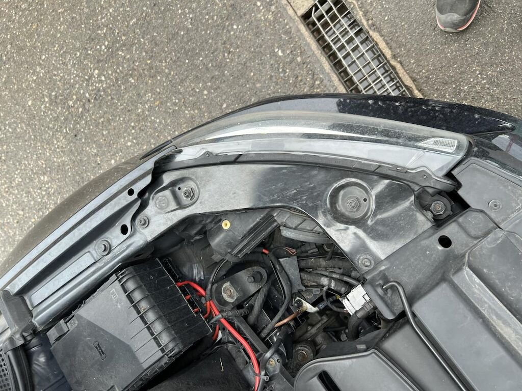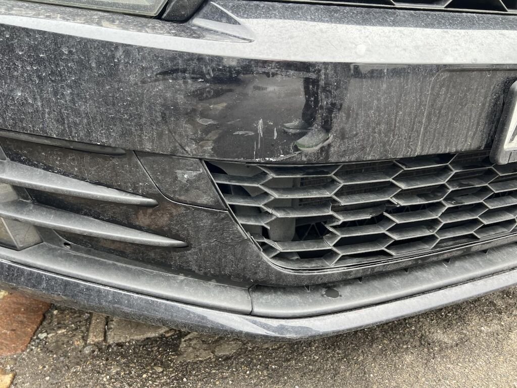 Vorne wurde die Stossstange, das Kontrollschild, das Lufteinlassgitter, der Kühlergrill, der Träger, die Frontmaske und der Klimakondensator beschädigt.