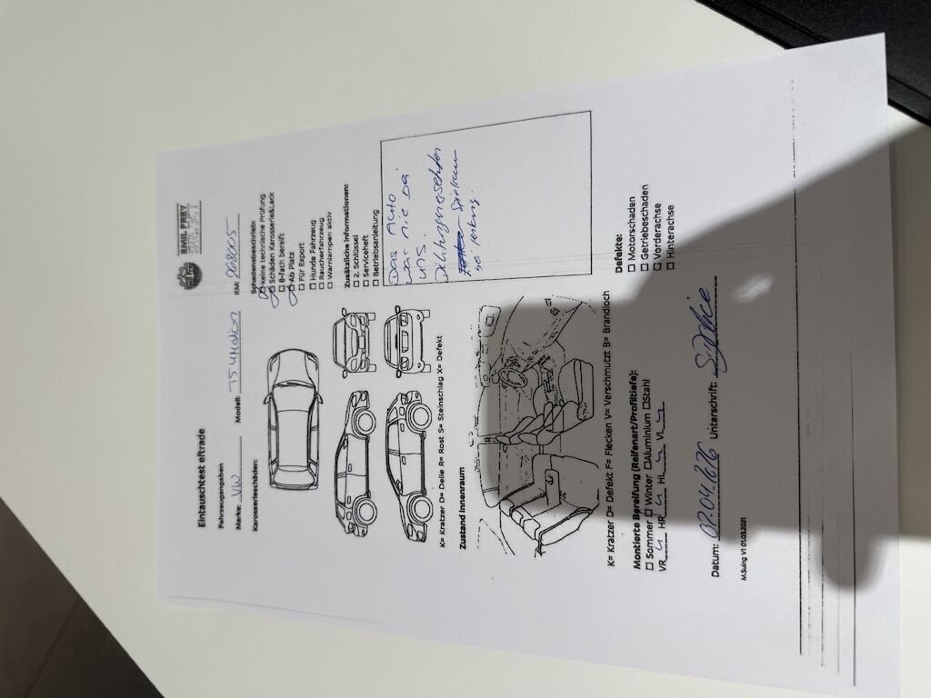 Keine technische Prüfung (Werkstatttest) vorgenommen