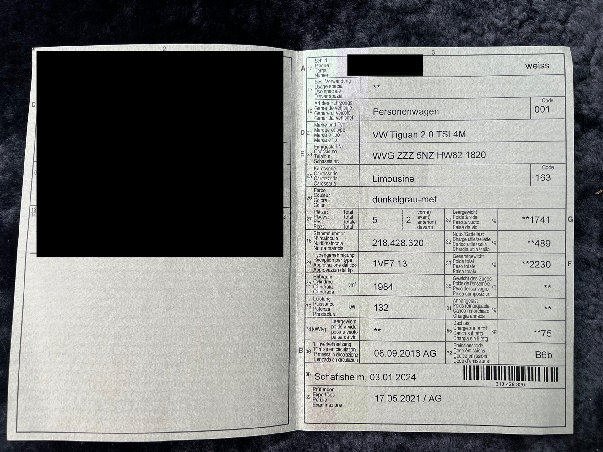 2016 VW Tiguan 2.0 TSI 4M