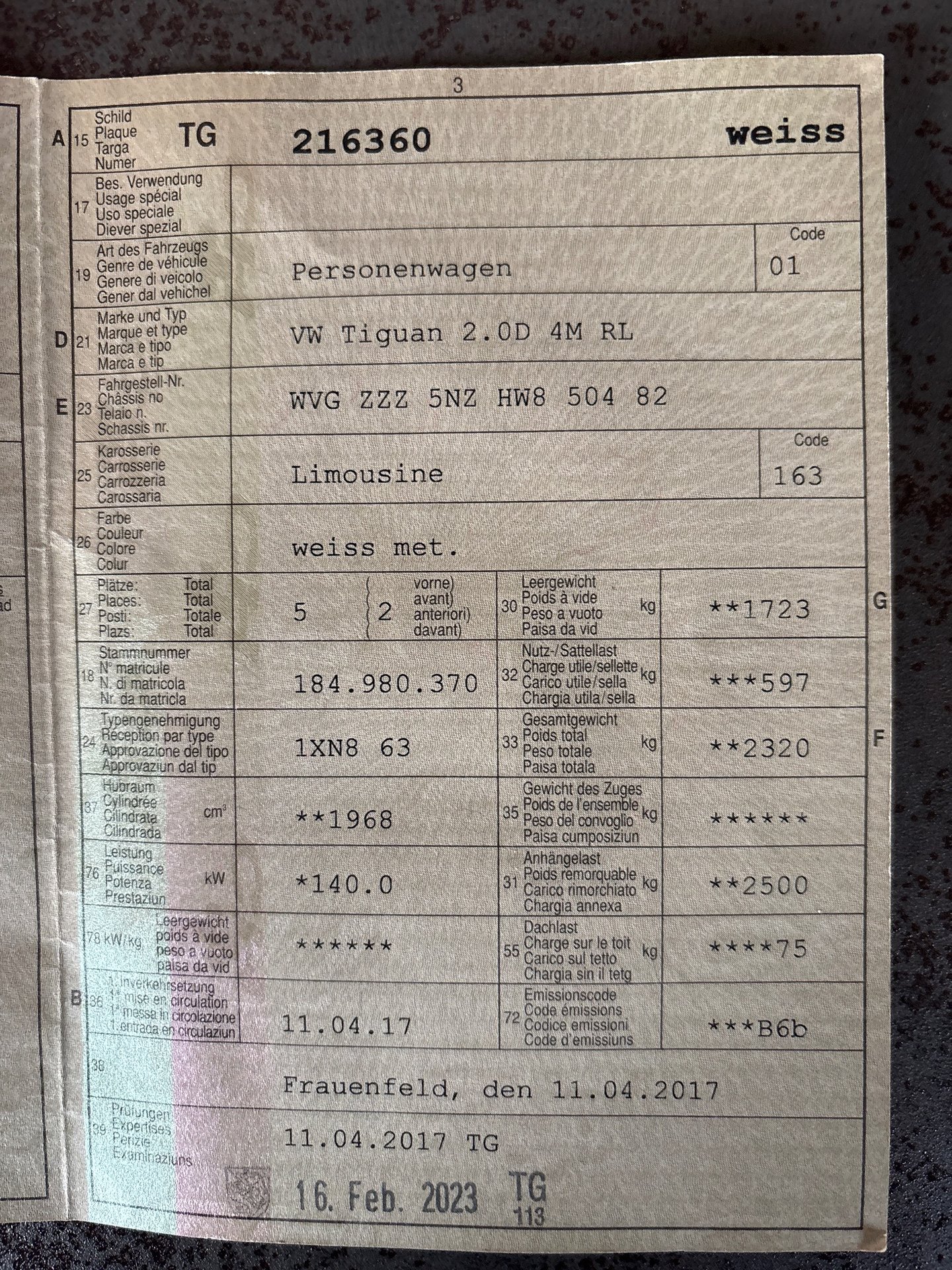 2017 VW Tiguan 2.0D 4M RL