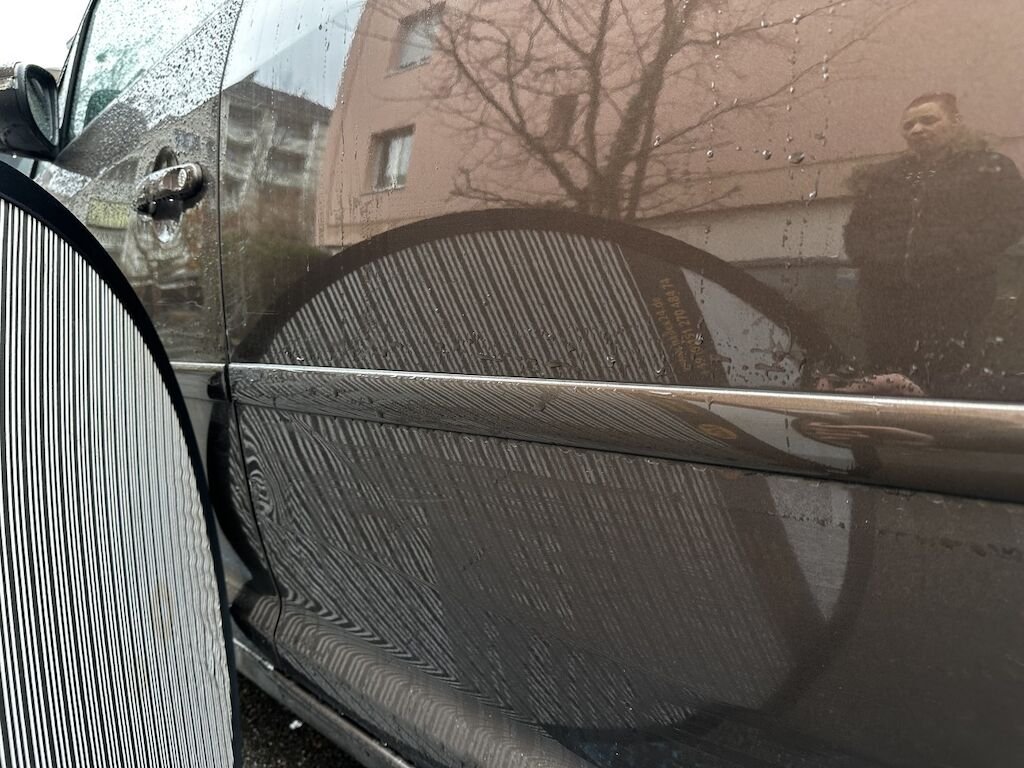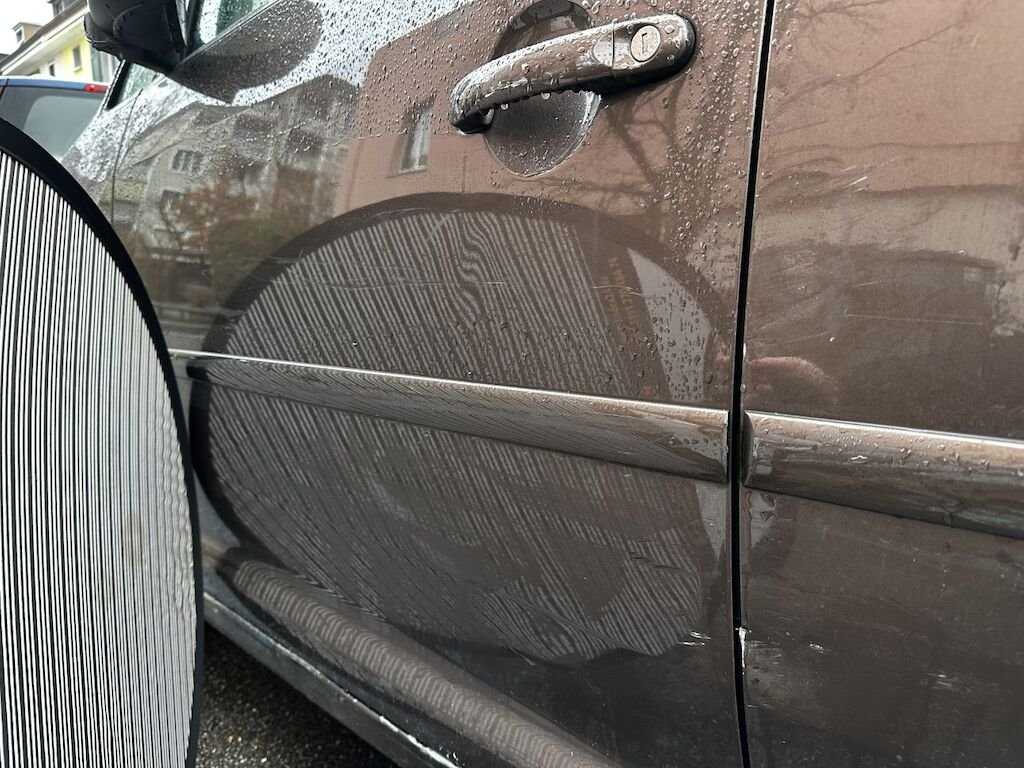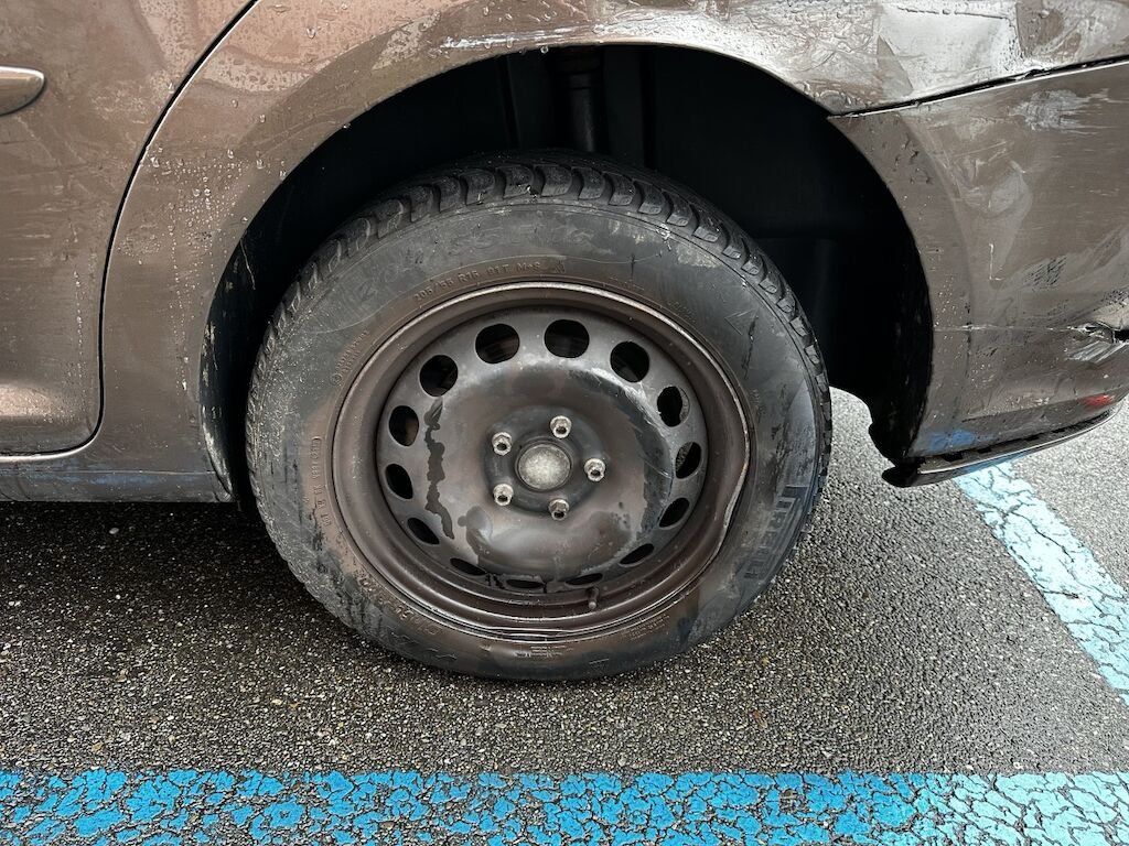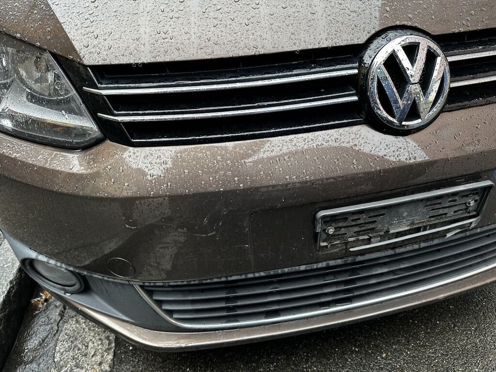 Anprall an der Fahrzeugfront : Dabei wurde die Stossstange vorne beschädigt.