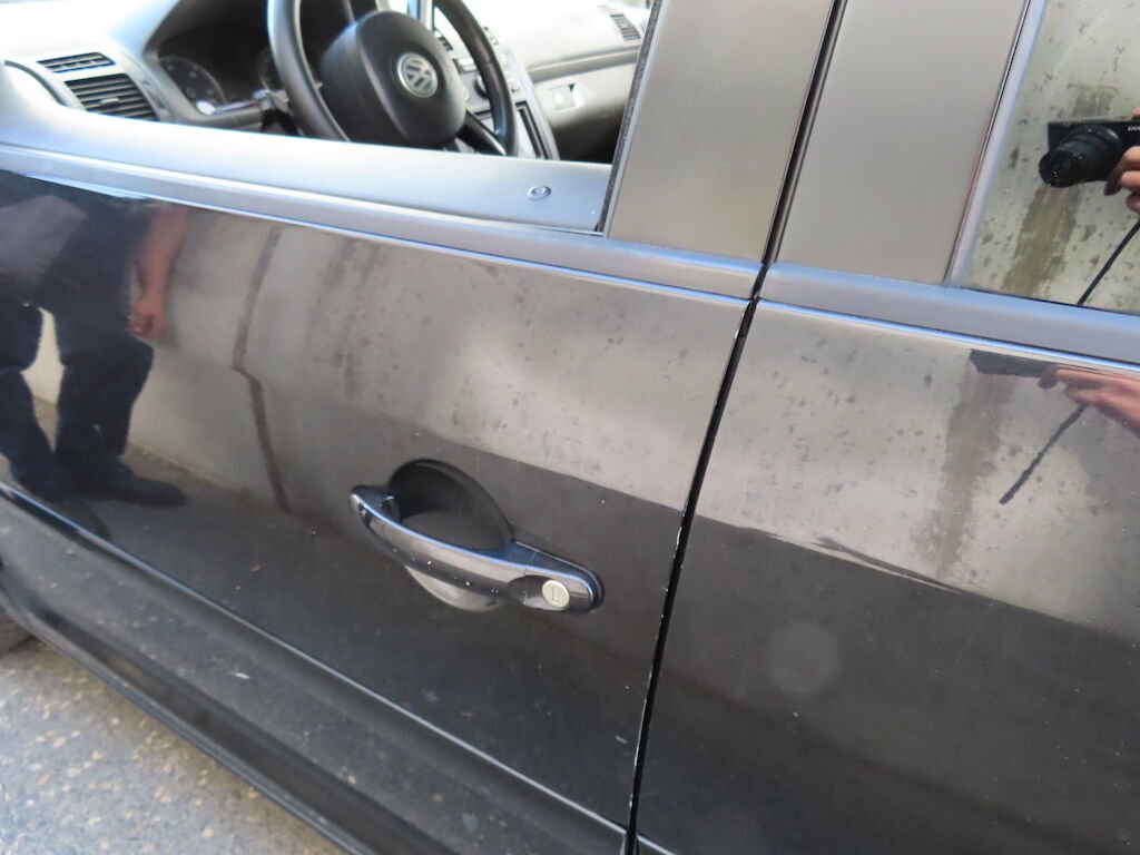 - Tous les éléments de la carrosserie, pare-chocs avant et arrière, rétroviseurs, jantes : Impactés-éraflés