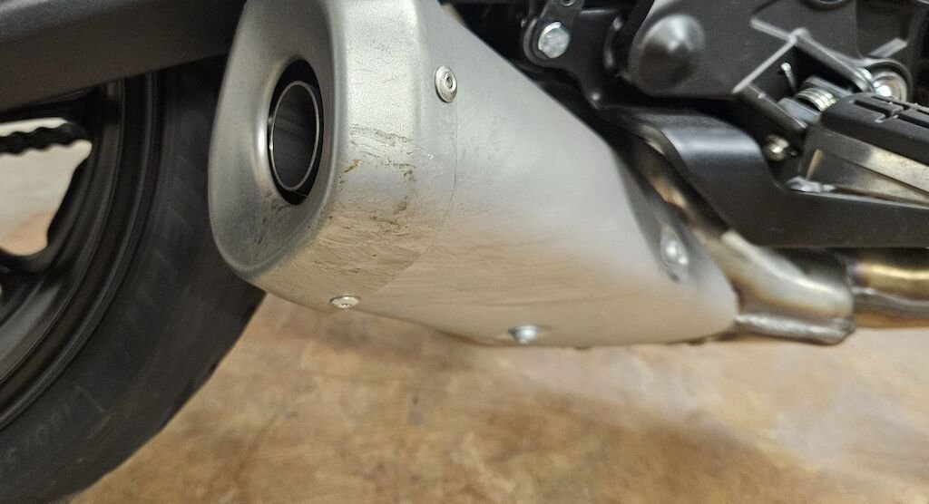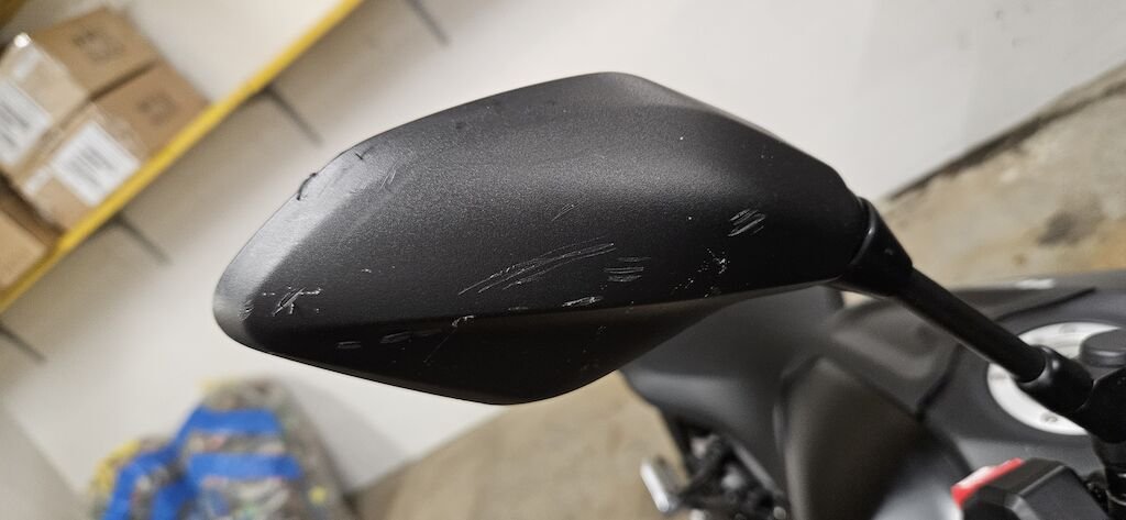 Bremshebel, Bremszylinder, Lenker, Spiegel, Gasgriff, Seitenverkleidungen, Tankverkleidungen, Federgabel rechts, Felge rechts, Motorgehäusedeckel, Wasserpumpendeckel und Wasserleitungen, Kühlerverkleidung VR, Blinker VR, Hinterbremshebel, Blenden am Auspuff vorne und hinten,