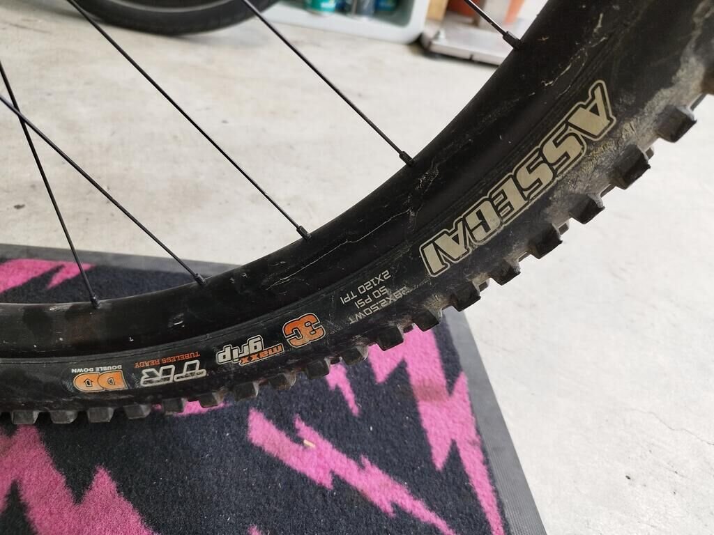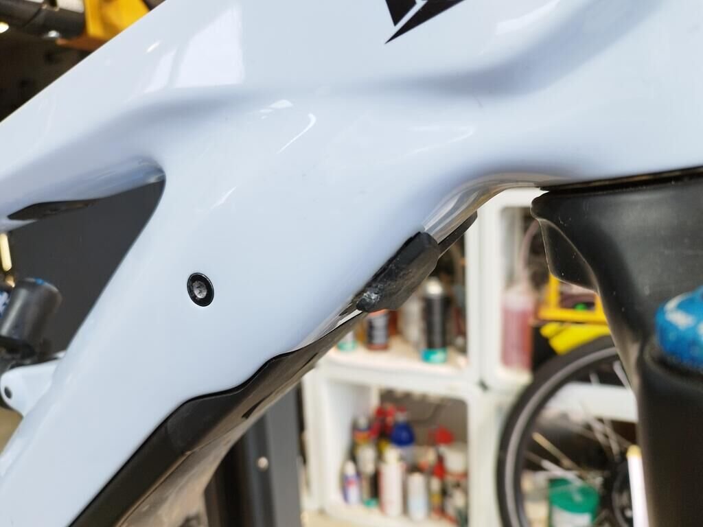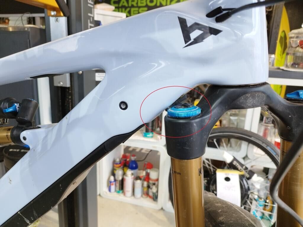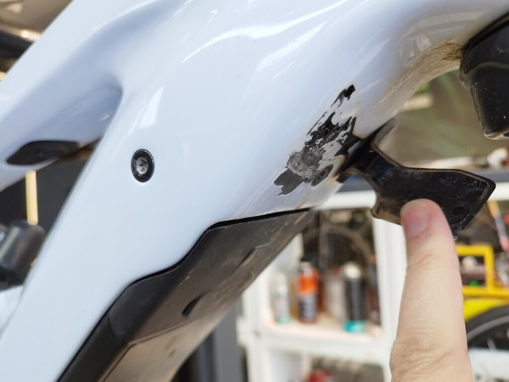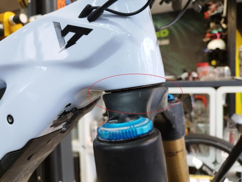 Das Rad vorne ist beschädigt, die Frontgabel ist beschädigt, der Rahmen ist deformiert.