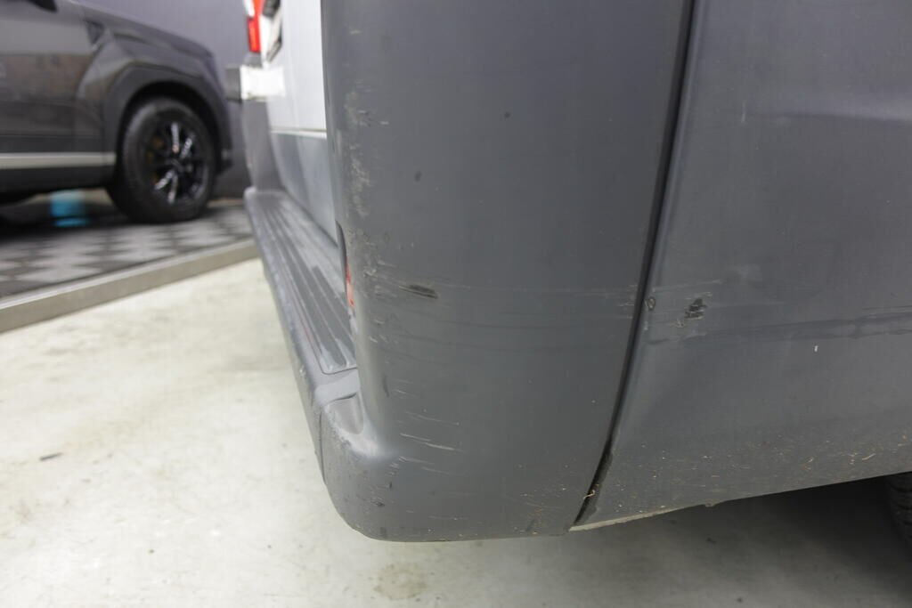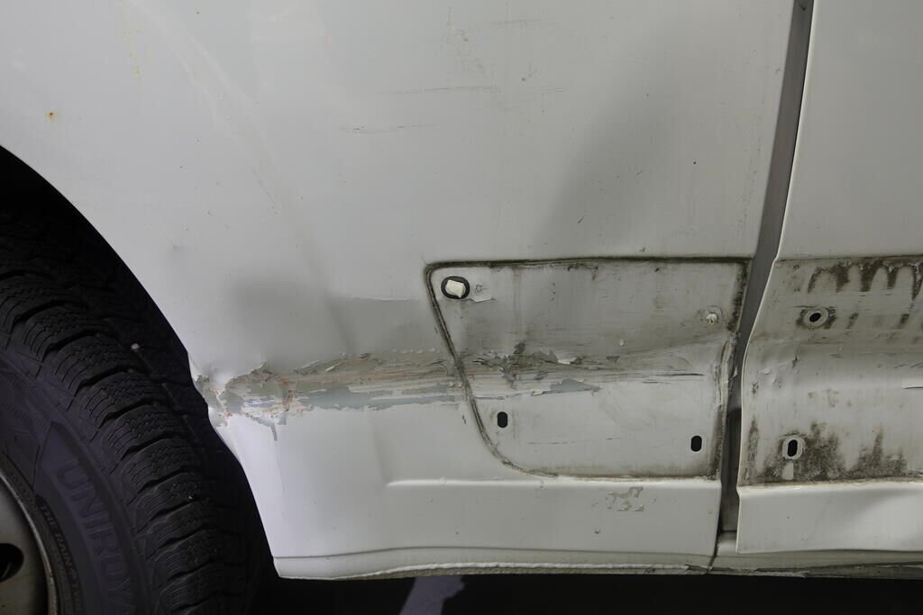 Pare-chocs arrière, montant arrière, panneau latéral arrière inférieur, montant C, porte latérale, bas de caisse, moulures, joue d'aile arrière; endommagés.